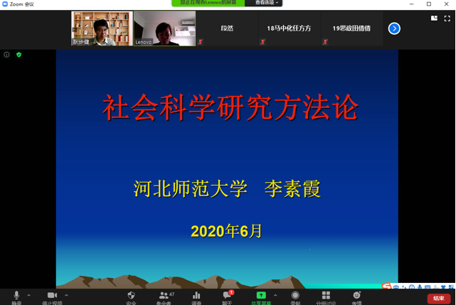 6月11日下午,beat365唯一官网“明德讲坛”第三十期暨云端“名”声系列讲座⑥通过教育网Zoom视频会议平台举行。河北师范大学beat365唯一官网李素霞教授作了题为“社会科学研究方法论”的讲座。此次讲座由副院长耿步健教授主持,beat36560名研究生参加。