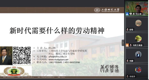 最后,王维国副教授向何云峰教授关于劳动精神系统讲解表示衷心感谢,在场聆听讲座的同学纷纷表示通过对讲座内容的学习,以及与老师的交流讨论,对进行新时代劳动精神有了进一步的了解。(彭程撰稿)