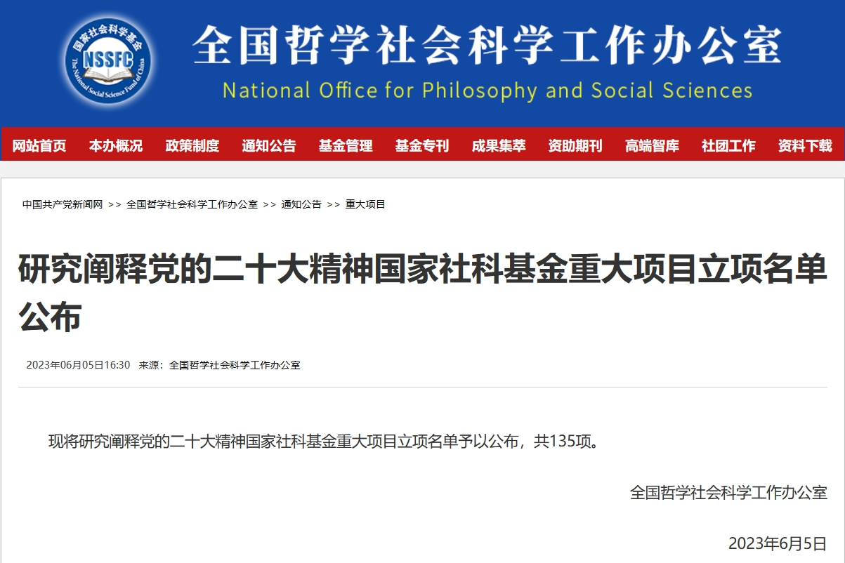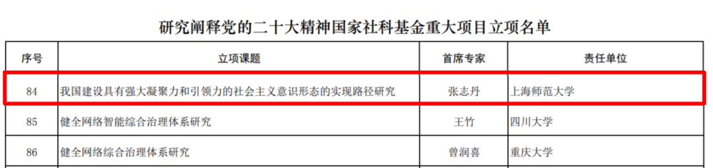 2023年6月5日,全国哲学社会科学工作办公室公布了研究阐释党的二十大精神国家社科基金重大项目立项名单,beat365张志丹教授主持申报的课题《我国建设具有强大凝聚力和引领力的社会主义意识形态的实现路径研究》获批立项。