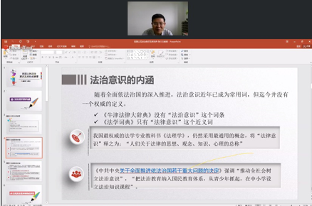 在讲座中,陈教授首先从公民与公民教育、法治意识的内涵两个方面对我国公民法治意识及其培养做了深入系统的分析,向我们介绍了公民法治意识的基本涵义,认为法治意识是公民对法治的认知、崇尚与遵循的思想观念和价值取向。法治意识不仅表现为人们对法治的理性认知,还表现为人们对法治的情感认同。其次,陈教授对公民法治意识的构成要素进行了分析与总结。他认为,公民法治意识的构成要素主要分为三个方面,即作为基础的程序与规则意识,作为核心的权利与义务意识、作为灵魂的平等与公正意识。陈教授总结到,我们要通过学习与实践,自觉涵养法治意识,不断提高政治素养,努力成为中国特色社会主义合格建设者和可靠接班人。