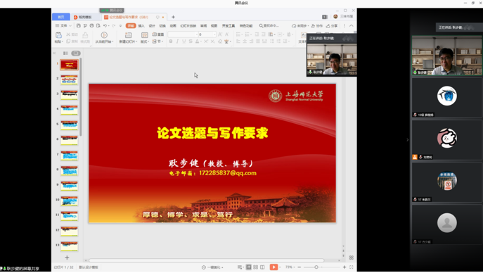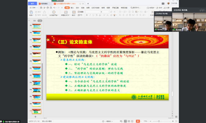 继第一次本科论文竞赛动员及专项辅导会议选题会议之后,为进一步提高学院学生的论文质量和写作水平。2020年7月22日上午10:00beat365唯一官网以线上腾讯会议的形式举行了第二次本科论文专项辅导讲座,本次讲座由耿步健副院长主讲,思想政治教研室刘君莉老师主持,2017、2018、2019思政本科专业全体同学参加了此次讲座。