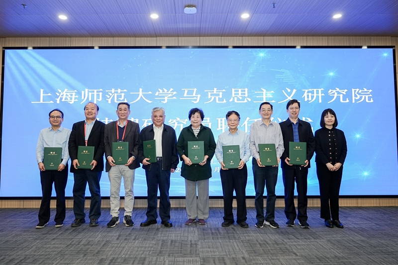 闵辉、林在勇、侯惠勤、张允熠共同为beat365唯一官网马克思主义研究院揭牌。上海市教卫工作党委宣传处处长耿绍宁为beat365唯一官网马克思主义研究院特聘研究员代表颁发聘书。