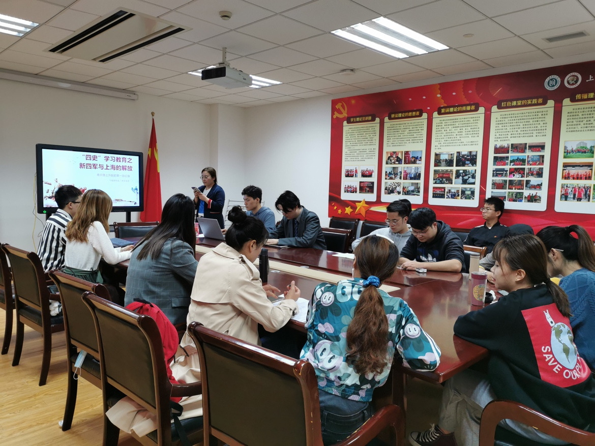 在1班党支部分享了“人民至上 生命至上”和“蔡和森为首领导的三次学生运动”之后,冯博文分享了“四史”故事,“新四军与上海的解放——南京路上升起的第一面红旗”。解放上海时,最先冲到市中心南京东路的部队是中国人民解放军第20军60师178团第一营。这是一支名副其实的上海人民的子弟兵队伍。它与上海有着深厚的渊源,他们中有许多人,特别是营、连、排的各级指挥员,大多是从上海这座城市走出去参加革命队伍的。经过艰苦卓绝的战斗,人民不会忘记、历史更不会忘记上海南京路迎来的第一支解放军部队,南京路上升起的第一面红旗。