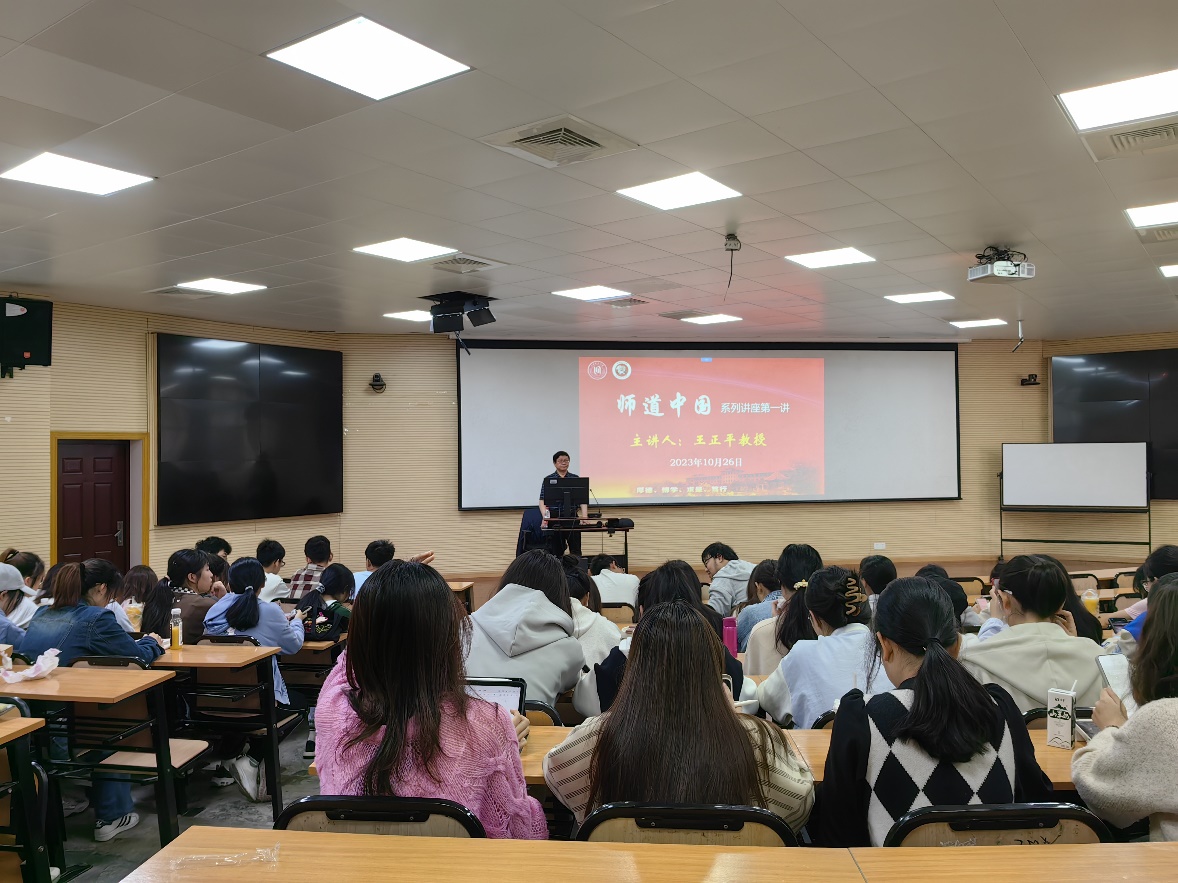 讲座最后,王正平教授寄语在场的同学“师范生是未来的人民教师”,希望同学们努力学习专业知识,不断加强师德养成,将来在平凡的教育和教学岗位上,为社会的文明进步,民族的伟大复兴,尽智竭力。