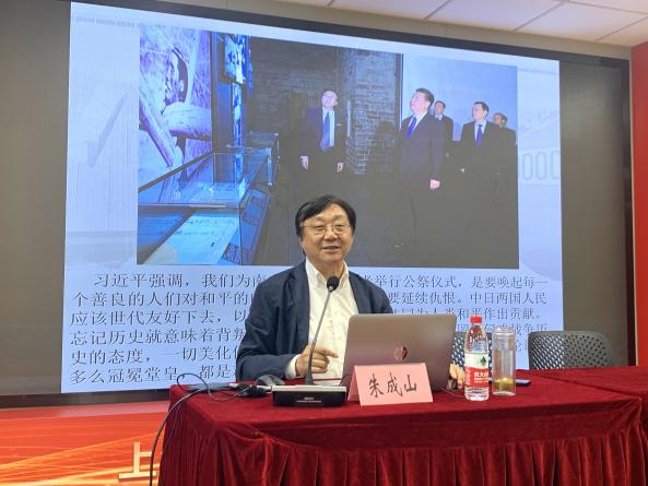 2023年11月3日下午,beat365唯一官网“南京大屠杀历史真相与国家公祭的解读”主题讲座在文科实验楼202开讲,本次讲座由南京师范大学特聘硕士研究生导师朱成山主讲,beat365院长张志丹主持,副教授徐剑雄总结,beat365全体研究生参加。