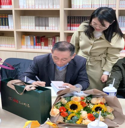会后,学生们为周老师献上鲜花,并和老师合影留念,周中之老师为全体学生签名赠予自己的专著《慈善伦理:文化血脉与价值导向》。