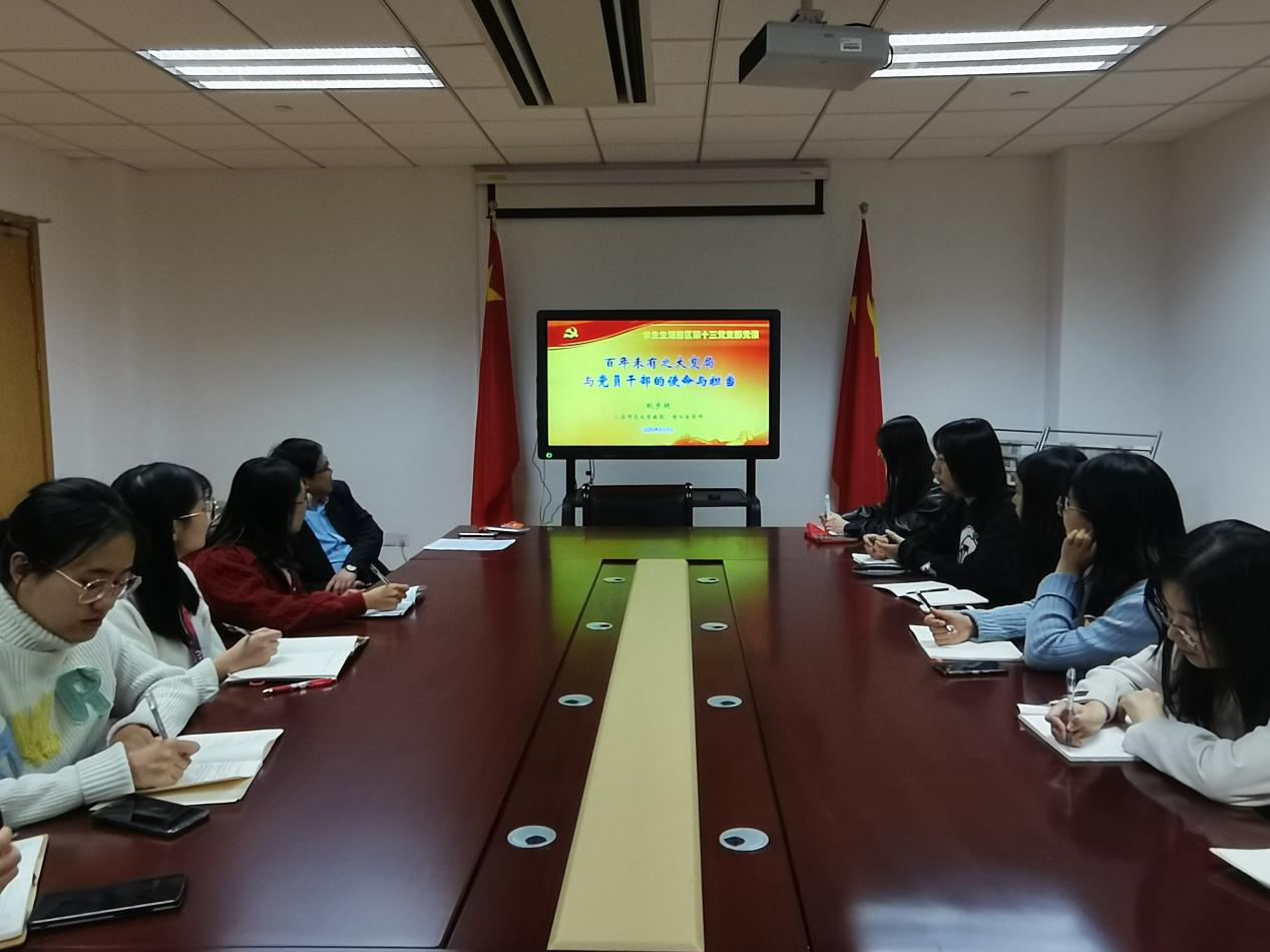 2020年11月11日晚上8时30分,学生生活园区第十三党支部在文科实验楼410召开了“百年未有之大变局与党员干部的使命与担当”专题党课活动,本次活动邀请耿步健教授上党课,由支部书记蔡思欣主持,十三支部全体党员参加。