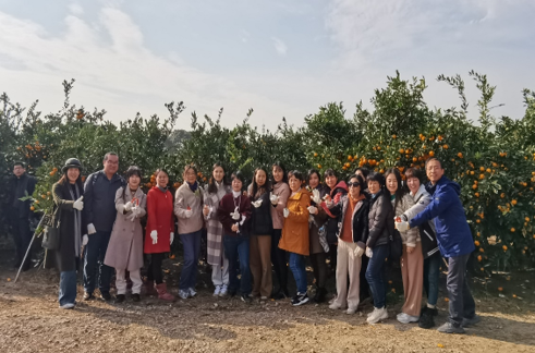 上午老师们来到长兴岛桔子种植基地进行采摘劳动体验。当天正是秋高气爽,天气宜人,桔子成熟季,看到一棵棵桔子树上挂满了黄澄澄的大桔子,大家都很激动,恨不得马上下地“抢收”,在果农的讲解和了解劳动注意事项后,大家戴上劳动手套,拿起采摘工具,三五成群,挑选最优质的果树正式进行采摘活动。大家在欢声笑语中进行采摘劳动,这样的劳动体验很有意义,大家不仅感受到丰收的喜悦,还与自然近距离接触,更重要的是在采摘活动中老师们相互间进一步加强了联络,增加了交流,递进了凝聚力,活动在积极、愉快、放松中完成。