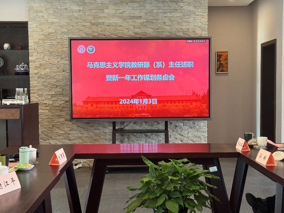 随后,马克思主义基本原理教研部主任贾淑品、习近平新时代中国特色社会主义思想概论教研部主任谢江平、毛泽东思想和中国特色社会主义理论体系概论教研部主任郭力源、中国近现代史纲要教研部主任徐立波、思想道德与法治教研部主任周治华、形势与政策教研部主任刘君莉、思想政治教育系主任张凤池、研究生思想政治理论课教研部徐蓓分别作述职发言,回顾和总结2023年教学改革和研究、课程建设、师资建设、人才培养等工作,并就新一年的工作目标和计划提出设想。