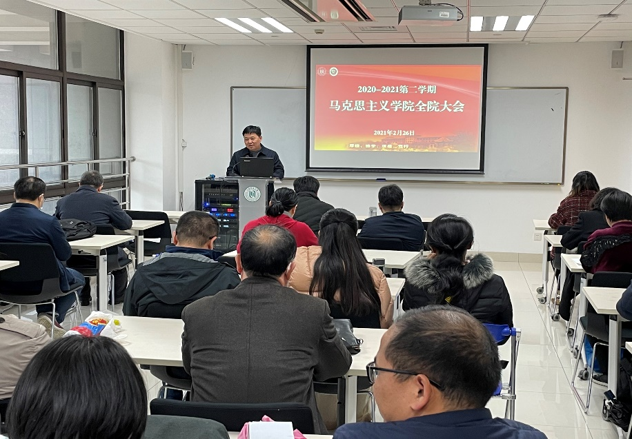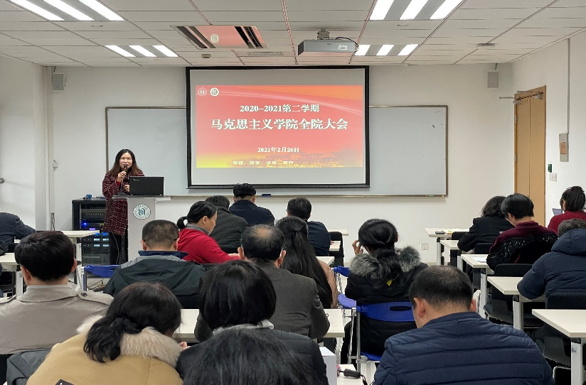 院党委书记刘凤指出,疫情期间学院各位老师克服困难、认真工作,学院的各项工作在学校的大力支持和老师的共同努力下有序推进并取得了突破性的进展。随后刘凤书记介绍了新入职的教师,并对新入职教师加入马院大家庭表示热烈欢迎。
