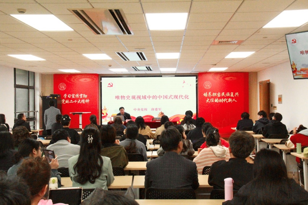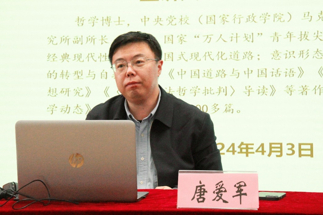 讲座尾声,唐爱军教授对各位同学的提问作了精彩回应。最后,张志丹院长对本次活动作了简要总结,并勉励全院教师和青年学生应以中国式现代化全面推进中华民族伟大复兴为己任,树立远大理想,付诸实际行动,保持强国有我的定力和自信。