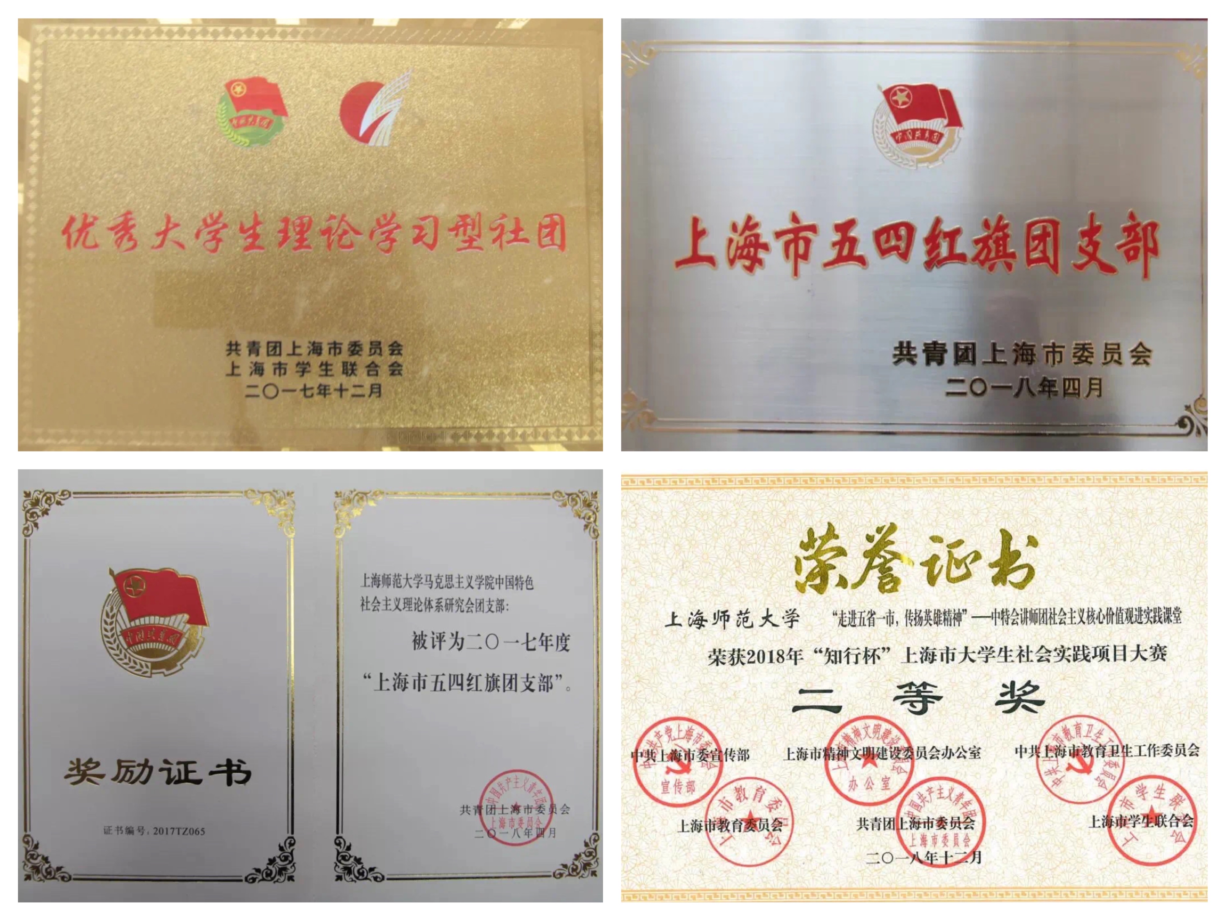 先后荣获上海市“优秀大学生理论学习型社团”、全国高校“活力团支部”、“上海市五四红旗团支部”、“上海市青年五四奖章集体”等荣誉。