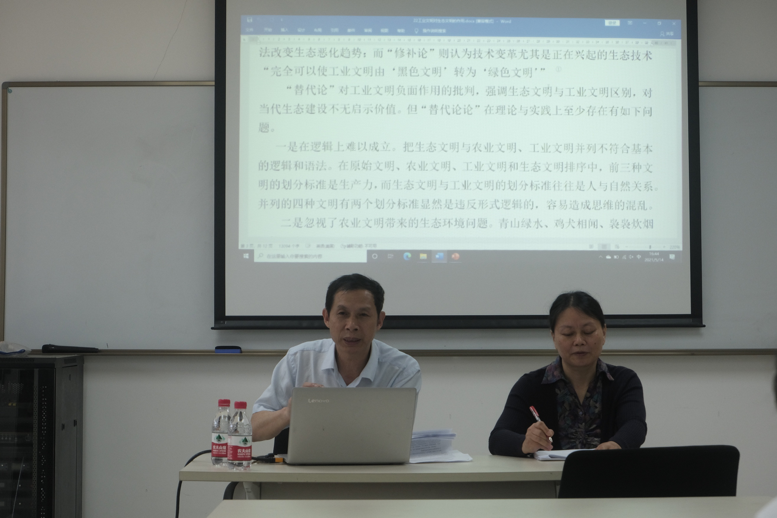 陈永森教授从生态文明的历史定位出发,结合城市与工业的建设发展内容,向同学们阐述了生态文明与工业文明之间的辩证关系,阐明了生态文明建设的至关重要性。陈教授在本次讲座中主要围绕国内外对生态文明历史定位的两种观点(即“替代论”和“修补论”)展开论述。不同的历史定位表露出对当前生态问题的严重程度的不同以及不同的文明发展观。一方面,就“替代论”而言,它指的是把生态文明和工业文明对立起来,并将生态文明看作超越工业文明的社会形态,陈教授认为“替代论”是对工业文明负面作用的批判,指出“替代论”不仅在逻辑上难以成立,而且它严重忽视了农业文明带来的生态环境问题,对此,陈教授表示过分强调生态文明与工业文明的区别对当代生态建设没有任何启示价值。另一方面,就“修补论”而言,它指的是把生态文明看作是工业文明的生态化,并且“修补论”认为技术变革尤其是正在兴起的生态技术完全可以使工业文明由“黑色文明”转向“绿色文明”。陈教授对此指出加强生态文明的建设不仅需要我们及时制止把生态环境当作铺张浪费的、资本的不良想法,而且我们还应当敬畏自然,继承和发展现代工业文明的成就,进一步发展保护生态环境的科学技术,深刻领会生态文明的政治内涵,实现绿色可持续发展。