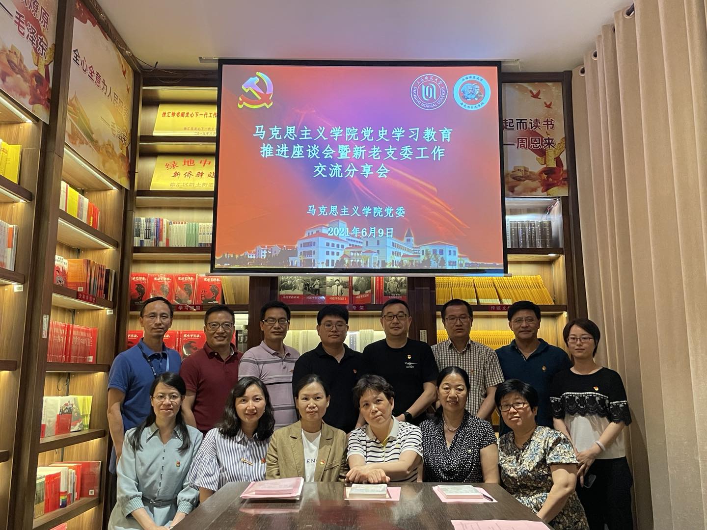 6月9日下午,beat365唯一官网党委在钟书阁召开党史学习教育推进座谈会暨新老支委工作交流分享会,学院党委委员、教工支部书记和支委参加。
