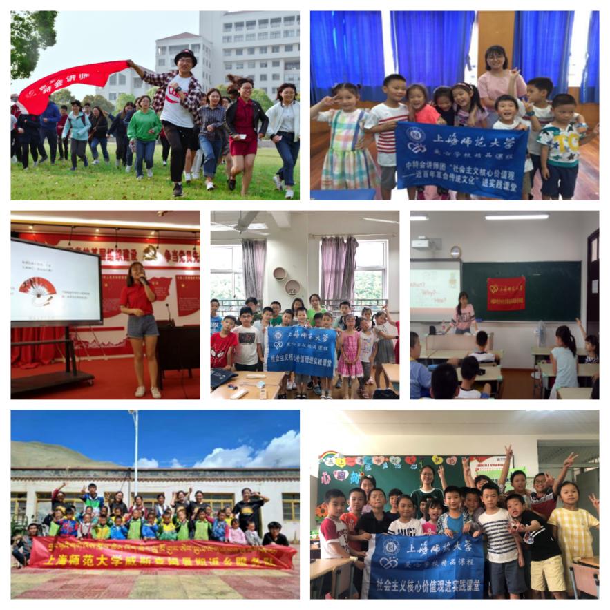 中国特色社会主义理论研究会社团打造“三进”精品课系列,进课堂、进社区、进网络,多渠道多形式展开,以社团活动为抓手培养未来思政课教师。让学生站上讲台,让有信仰的人讲信仰,社团将社会主义核心价值观教育、“四史”教育、抗疫精神、党史学习教育等内容融入中小学教育的第二课堂,并依托学院与奉贤海湾旅游区、康健街道党工委、嘉定陆家社区等党建共建平台,提供“菜单式”宣讲和“点单式”服务,通过将党的最新思想、理论、政策等内容转化为贴近生活、通俗易懂的语言,让党的创新理论深入人心。社员们共打造了40期集课件、讲授视频、教案于一体的“云课堂”系列,通过公众号、官网等渠道发布,课件结集成了两个百篇的精品教案集。