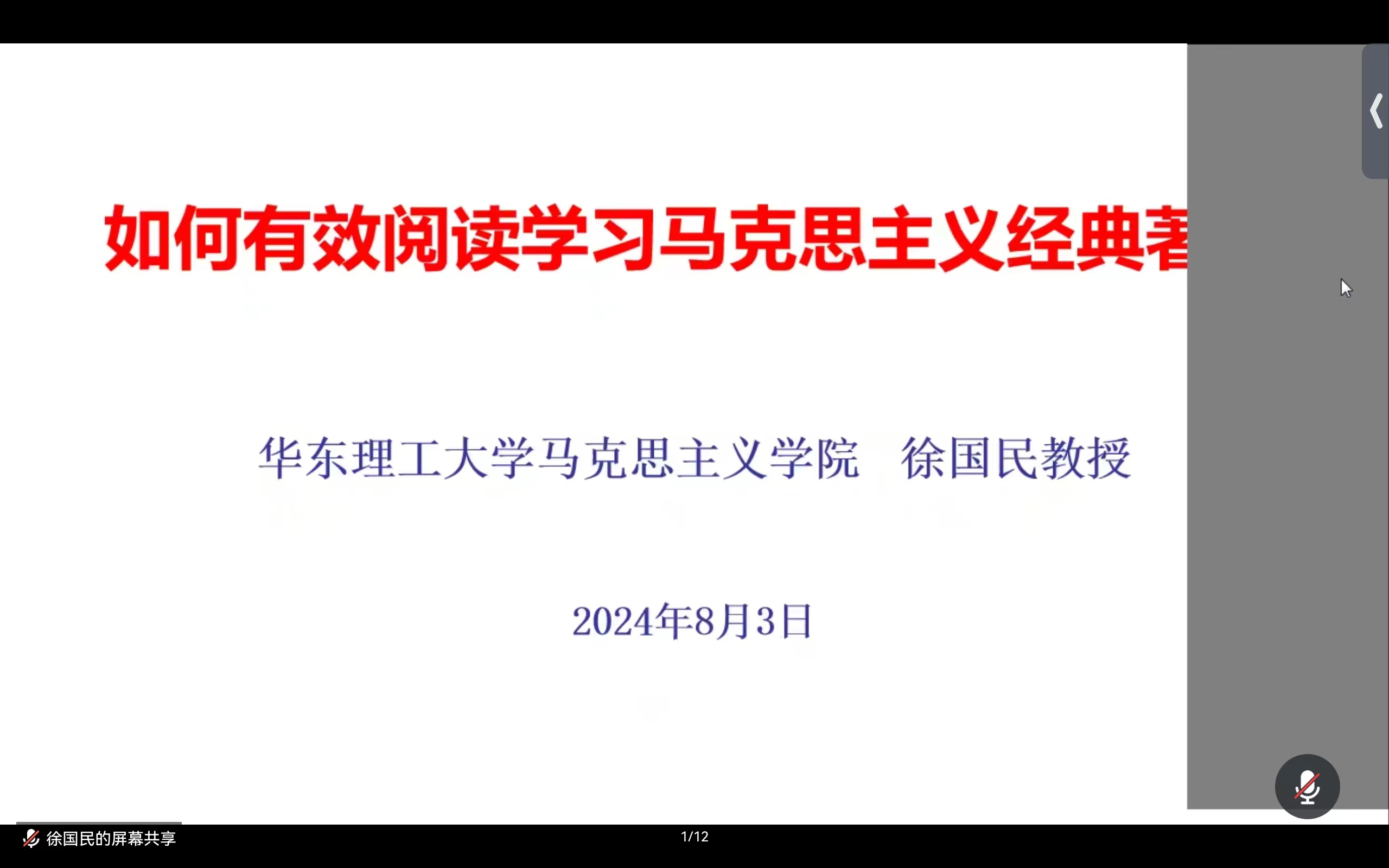 8月3日下午,beat365暑期研究生新生“培养前置”系列讲座第二讲通过“腾讯会议”线上平台举行,华东理工大学beat365唯一官网副院长徐国民教授应邀作了题为“如何有效阅读学习马克思主义经典著作”的讲座,本次讲座由副院长耿步健教授主持并总结,beat3652024级全体硕博士研究生新生、部分二三年级的硕博士研究生参加。