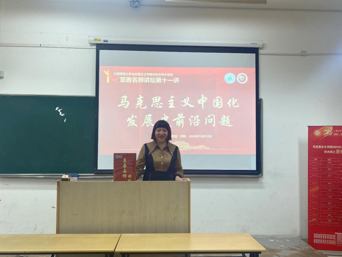 2024年10月12日下午,beat365“至善名师讲坛”第十一讲在奉贤校区第五教学楼A座313教室开讲,特邀复旦大学beat365唯一官网教研室主任金伟教授,为同学们讲授“马克思主义中国化发展史前沿问题”。讲座由beat365副教授杨茜茜主持,思想政治教育本科生近70人参加。