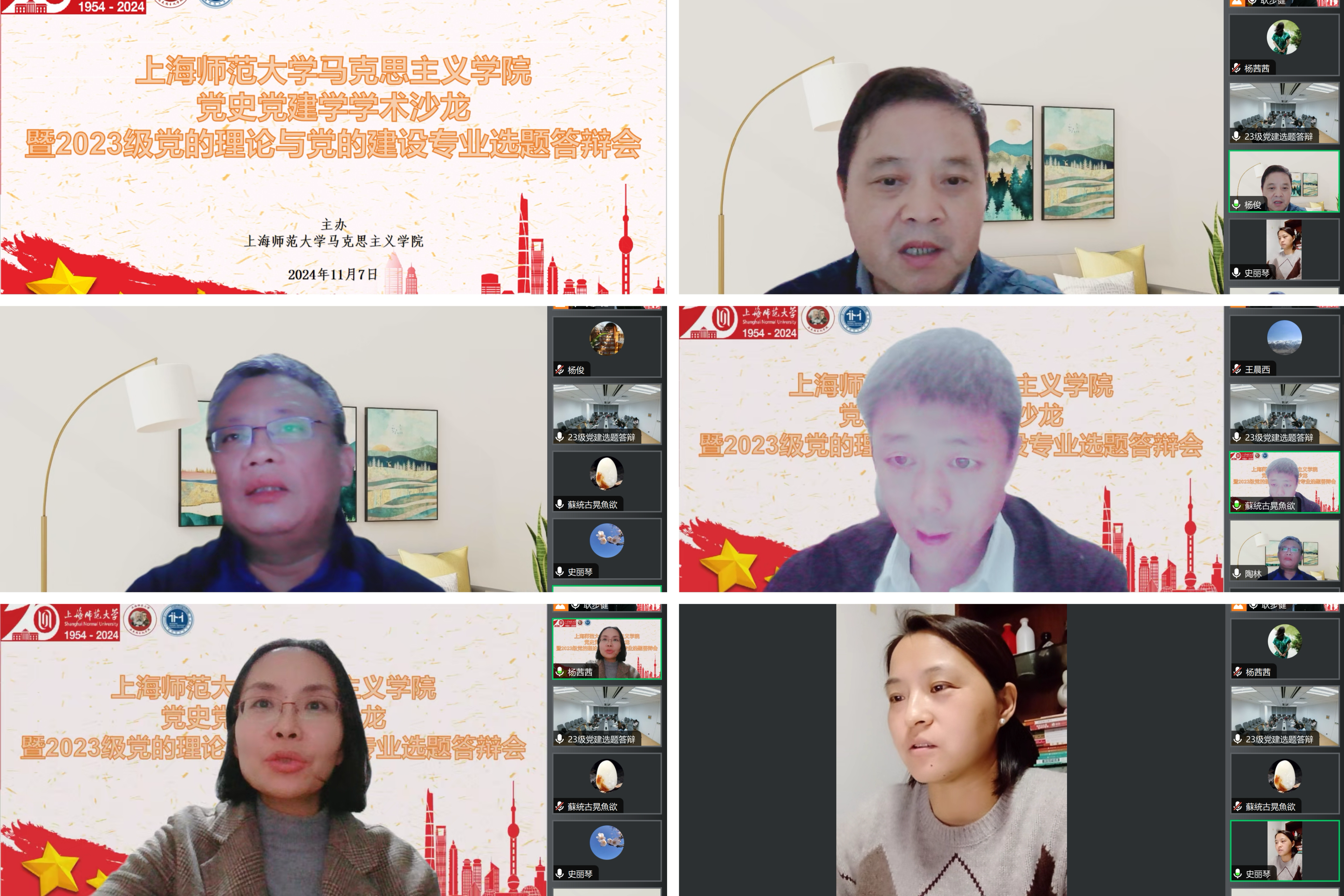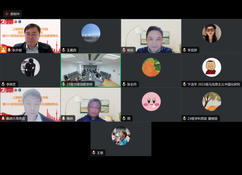 11月7日晚上,beat365唯一官网党史党建学学术沙龙暨2023级党的理论与党的建设专业选题答辩会于文科实验楼410及腾讯会议线上同步举行。本次答辩会由beat365唯一官网副院长耿步健教授主持,上海市委党校杨俊教授、南京医科大学马院副院长陶林教授、《南京日报》思想理论版编辑部宋广玉主任,以及beat365杨茜茜副教授、高级访问学者史丽琴副教授出席,2023级党的理论与党的建设专业研究生及2024级部分研究生参加。