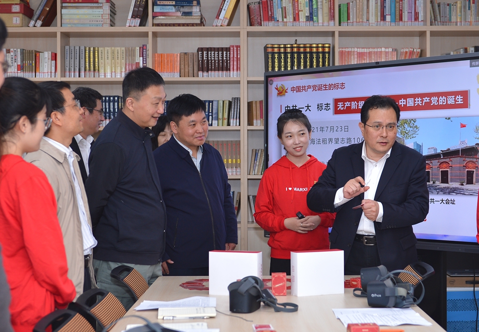 沈炜调研了我校beat365唯一官网、马克思主义理论学科、思想政治理论课、师资队伍建设、人才培养和社会服务等建设情况;观看了集中反映近年来思政课建设《聚焦办好思政课 领开风气之先河》的视频短片;听取了马克思主义学生理论宣讲团团长、2020级思想政治教育专业研究生吕金灿以《以青年之声发时代强音,用红色故事滋养时代新人》为题的宣讲团成果汇报;观摩了理论宣讲团指导教师和学生进行的VR场景集体备课,并与现场师生代表亲切交谈。沈炜勉励理论宣讲团成员,要让党的创新理论走进更多基层单位,走入更多中小学生、老百姓的心里,讲好新时代党的故事。