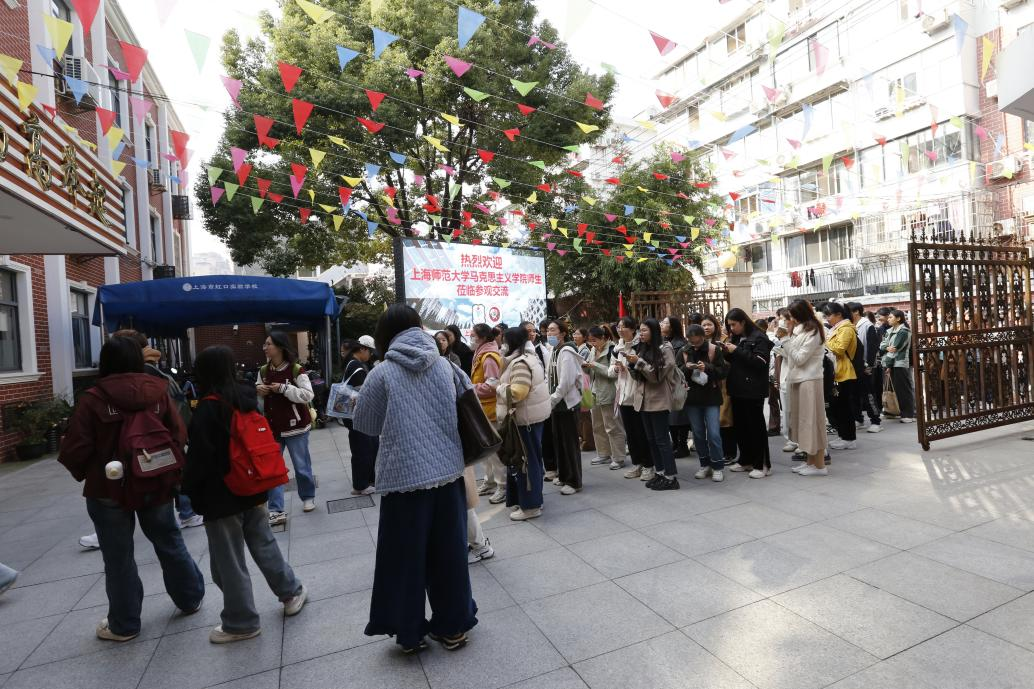 11月21日下午,在学院党委副书记、副院长万瑾、副院长周治华的带领下,思想政治教育专业2024级本科生、退役军人学院联合培养生共约80人走进虹口实验学校中学部,共同见证学院与虹口实验学校共建教育实践基地签约仪式并开展沉浸式“行走的大思政课”。此次“行走的大思政课”作为“习近平总书记关于教育重要论述研究”课程的现场教学内容,由虹口实验学校校长孙光政主讲。学院办公室主任姚承志、思想政治教育专业负责人杨茜茜、虹口实验学校党委书记倪永旭、副校长邬明敏、副校长王霆、校办主任夏菱全程参与此次活动。