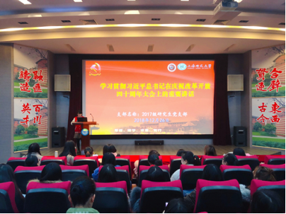 12月26日,学院2017级研究生党支部围绕学习贯彻习近平总书记在庆祝改革开放四十周年大会上的重要讲话和《中国共产党支部工作条例(试行)》开展主题党日活动。本次活动由2017级研究生1班党支部书记陈红斌主持,2017级全体研究生党员、入党积极分子参加了本次活动。