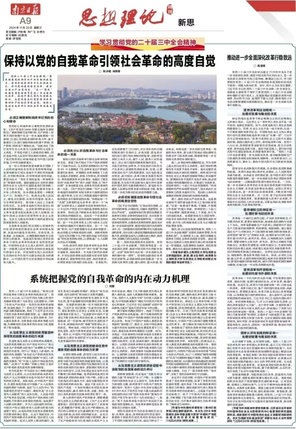 南京日报|耿步健、姚笑寒 :保持以党的自我革命引领社会革命的高度自觉