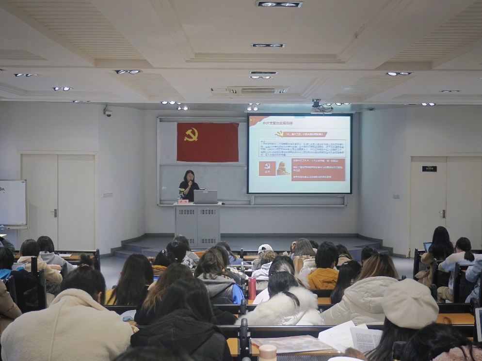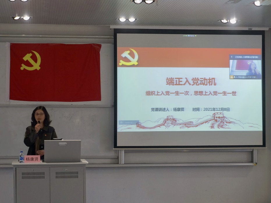 影视传媒学院党委书记杨康贤以《如何端正入党动机》为主题进行首场党课,她围绕中国共产党的发展历程、入党程序、什么是端正的入党动机三个方面展开讲述。杨老师向学员讲授了中国共产党名称的由来和历届党代会的成就,通过图表详细清晰地介绍了党员发展的流程步骤,在此基础上,杨老师强调入党动机是一个人要求入党的内在原因和真实目的,是推动人们争取入党的精神力量,只有端正入党动机,才能产生正确的争取入党的行动,才能经受住党组织的考验。