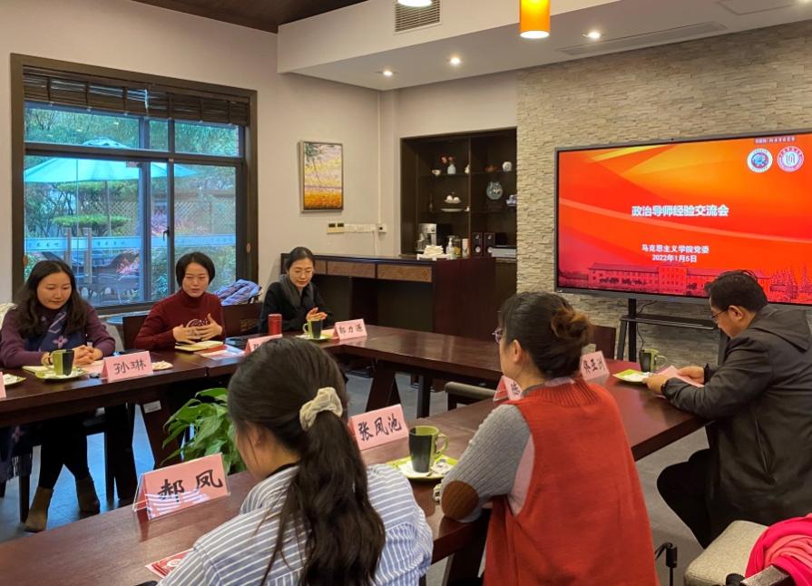 本科生辅导员白瑶对2020级、2021级本科生情况进行介绍,使结对老师更好地了解目前大学生的思想动态及特点,为今后顺利开展各项谈心谈话及思想教育工作做好充分准备。随后,政治导师代表对于开展工作过程中的经验以及困惑展开自由交流。第一届政治导师代表徐宁老师对于如何更好地同学生谈心谈话分享了个人经验,她提到要注重学生的选择权,选择合适的时机、场合、谈话内容以及频次,增强学生在谈心谈话过程中的获得感。郭力源老师指出在谈话形式的选择中,“一对一”比“一对多”形式更能增强谈话的有效性。