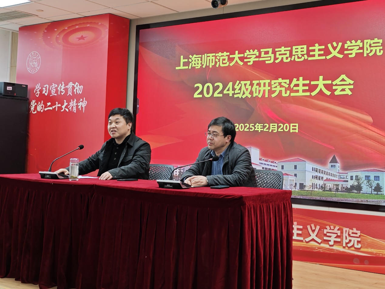 四名研究生作交流发言之后,分管研究生工作的副院长耿步健教授进行了讲话。他在指出本次研究生大会的初衷和意义的基础上强调:一要深化理论学习、打牢学术根基。要认真深入学习马克思主义经典著作和党的最新创新理论成果,尤其是渗透其中的世界观和方法论,为学术研究和社会实践提供坚实的理论基础。二要勇于创新实践、提升综合素质。一方面要积极参与社会实践和科研活动,将所学知识与实践相结合,不断锻炼自己的创新思维和实践能力,另一方面要注重提升自己的综合素质,包括人文素养、团队协作能力和国际视野等。三要加强学术道德建设,形成良好学术氛围。要强化与导师的联系,积极参与导师的项目申报和研究;既要学会独立开展学术研究,又要学会有组织地进行学术研究;要严格遵循学术道德和学术规范,杜绝利用AI进行论文写作和投稿;要提升各类课题的结项质量,要求以发表的论文进行课题结项等。
