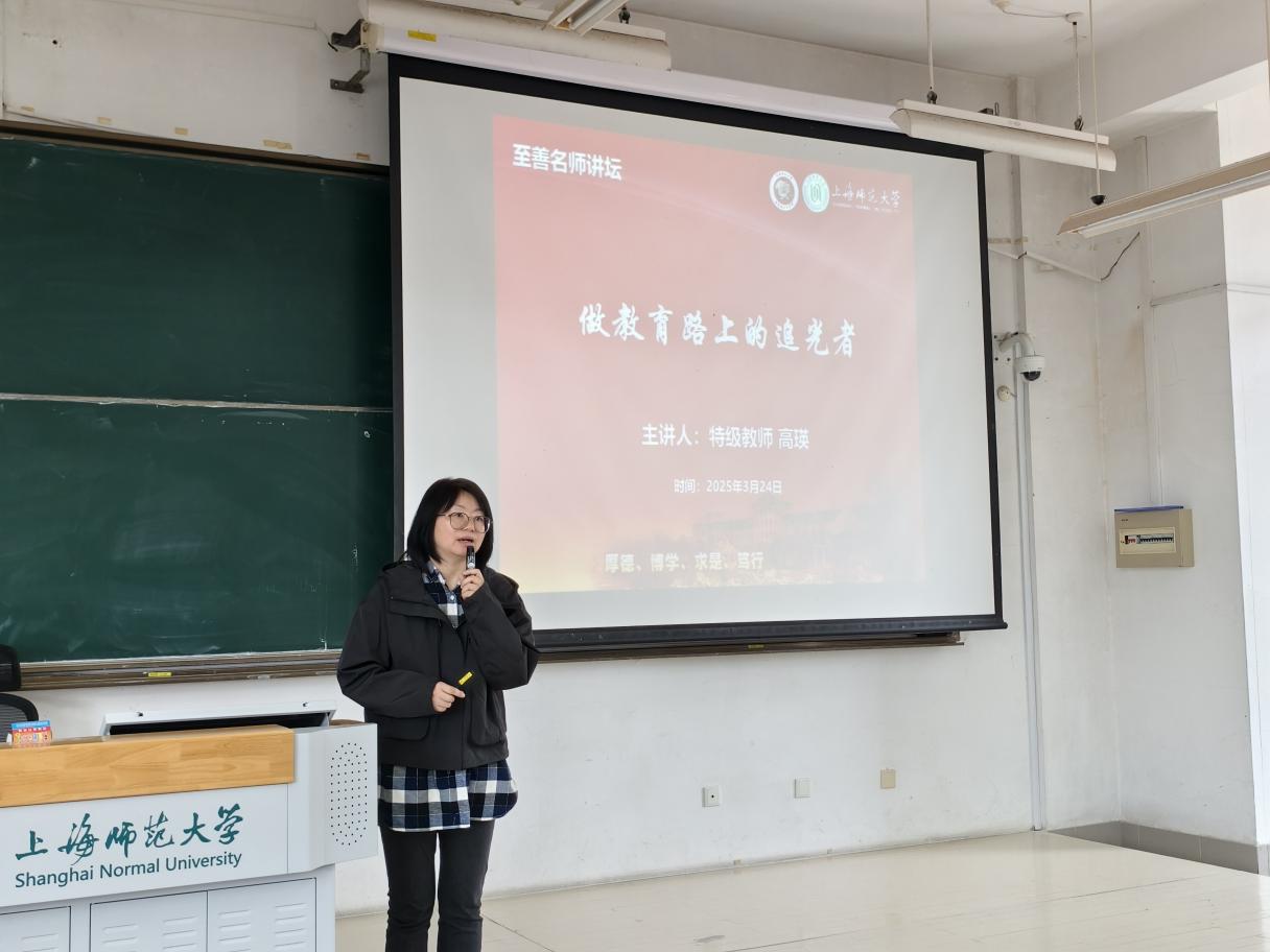 2025年3月24日下午,beat365“至善名师讲坛”第十八讲在奉贤校区三教302教室开讲,特邀上海市特级教师、松江二中副校长、99届beat365唯一官网校友高瑛老师为思想政治教育专业的同学们带来了一场题为“做教育路上的追光者”的精彩讲座。讲坛由思政系张惠敏老师主持,beat365唯一官网和退役军人学院思想政治教育专业本科生近120人参加。