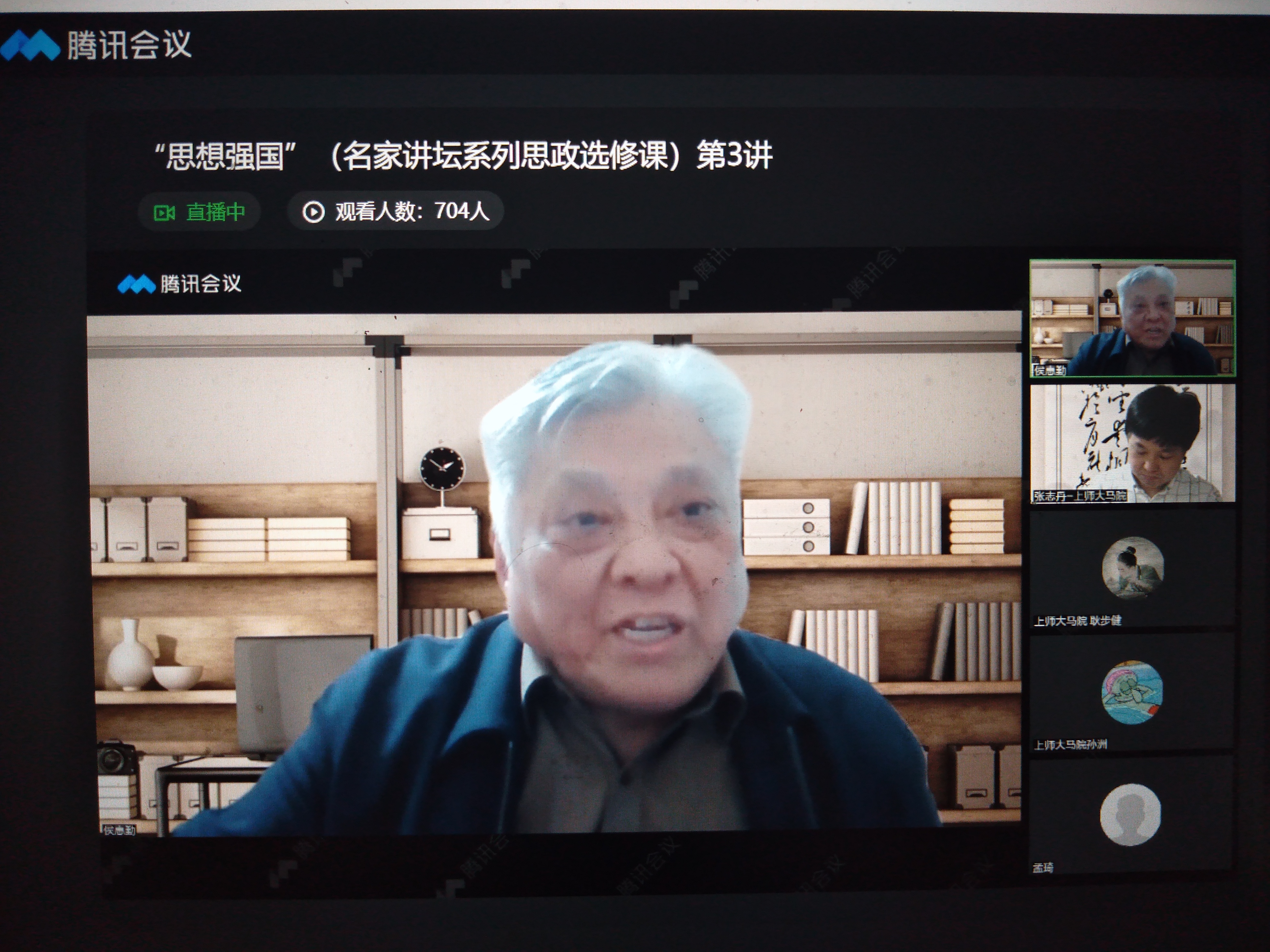 4月14日下午,beat365唯一官网“思想强国”(名家讲坛系列思政选修课)第三讲通过“腾讯会议”平台举行,中国社会科学院马克思主义研究院原党委书记、中国社会科学院大学特聘讲席教授、中国社科院国家文化安全与意识形态建设研究中心主任、中国历史唯物主义学会会长侯惠勤教授应邀作了题为《中国特色社会主义与当代人类文明新形态》的讲座。此次讲座由学院副院长耿步健教授主持,院长张志丹教授总结。beat365全体教师和研究生参加,来自全国高校的师生旁听者近1000人之众。