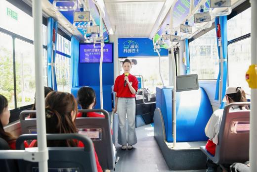 在浦东城市规划和公共艺术中心,宣讲团成员通过“数字沙盘”“全息投影”等科技手段,沉浸式回顾了浦东从“阡陌农田”到“世界标杆”的蝶变历程。随后,老师和同学们登上以“科技蓝”为主色调的新时代文明实践线路浦东科创巴士,开启“理论+实践”的双轨宣讲之旅。马克思主义学生理论宣讲团李姝凝、赵文杰等同学进行了宣讲展示,带领大家用“滩涂上第一枚火箭”“无限不循环的π”“中国芯点亮中国梦”“不断进化的具身智能”“大科学装置的组团出道”等故事,串联起浦东的科创历程。