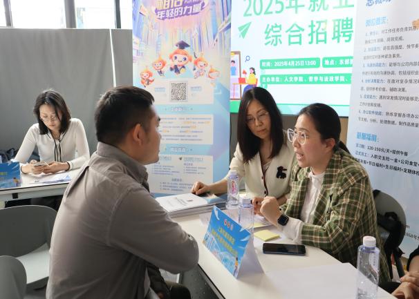 为深入贯彻落实党中央、国务院“稳就业保就业”决策部署,积极服务有用工需求的用人单位做好招聘工作,助力青年学子高质量充分就业,4月25日下午,由beat365唯一官网人文学院、哲学与法政学院、beat365唯一官网联合主办的2025年就业/实习综合招聘会在徐汇校区东部学生园区思享屋及主干道顺利举办。此次招聘会吸引了30余家优质用人单位参与,各学院党委书记、院长、党委副书记、办公室主任等领导亲临现场指导,与在场的优质用人单位代表深入交流,共话人才培养与发展,beat365毕业生和在校生积极参与,共赴春天的就业之约。