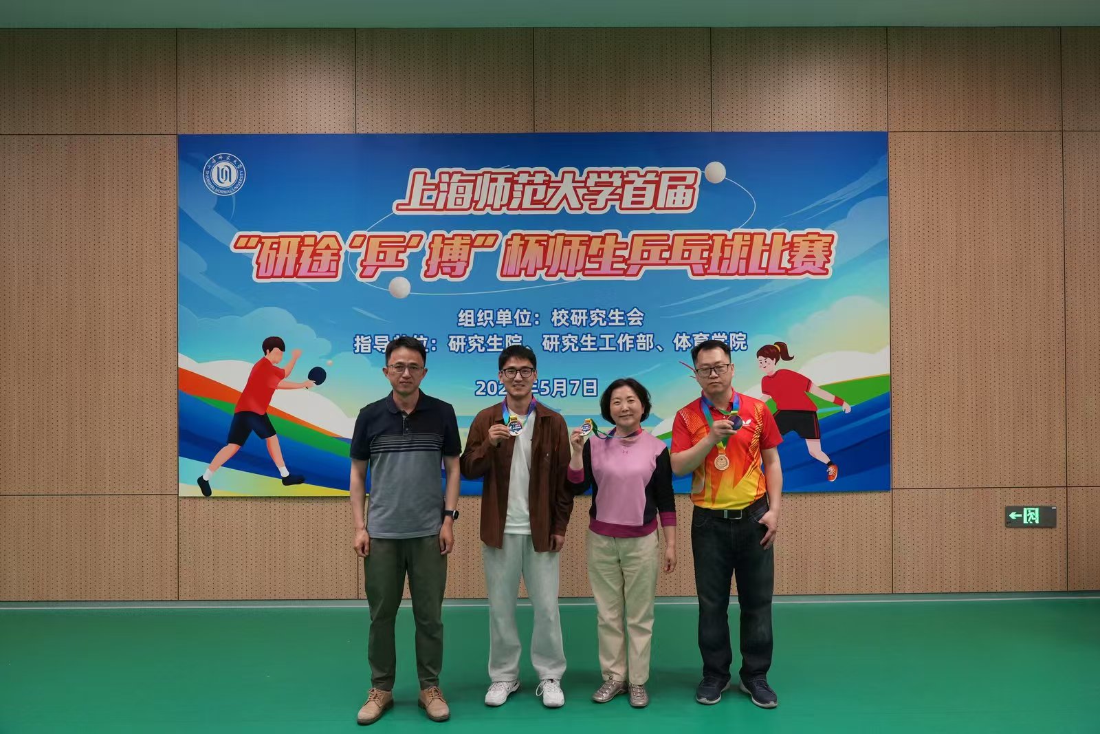 为全面贯彻落实习近平总书记关于研究生教育的重要指示精神,进一步弘扬体育精神,落实立德树人根本任务,2025年5月7日,由校研究生会主办的首届“研途‘乒’搏”杯师生乒乓球比赛在奉贤校区新大活火热开赛。beat365唯一官网与信息与机电工程学院联合组建的参赛队伍在激烈角逐中斩获团队第八名,学院张文潮教授获“MVP”最佳运动员称号。