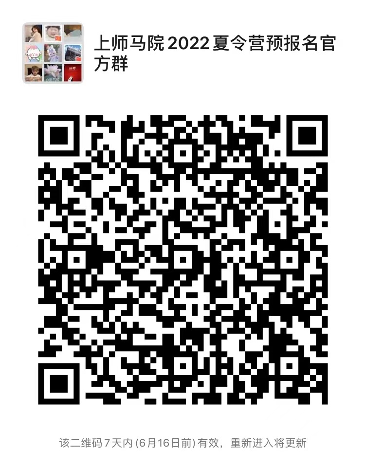 请成功完成预报名工作的同学,务必加入微信群“2022上师大马院夏令营预报名”,有关消息通知将在群内发布。