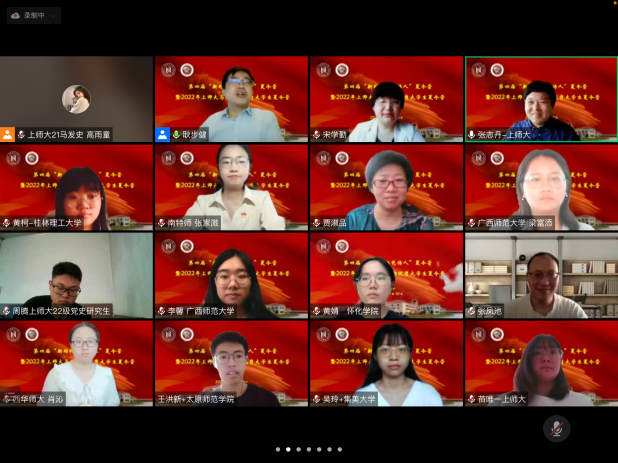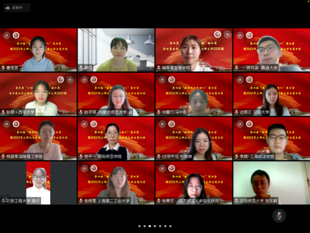 为加强大学生“四史”教育和红色文化教育、提升大学生科研素养、增进大学生学术交流,7月8日-10日,beat365于云端举办了第四届“新时代红色传人”夏令营暨2022年beat365唯一官网暑期优秀大学生夏令营活动,期间开展一系列学术讲座、师生思政课教学展示、营员交流会、考研及读研经验分享会等丰富多彩的活动。本次夏令营有近百名来自全国各高校的优秀大学生报名参加,beat3652022级研究生、2019级思政专业本科生以及部分青年教师也共同参加了本次夏令营。7月8日上午,副院长耿步健教授主持开营仪式,院长张志丹教授代表学院致辞并介绍学院整体情况、研究生专业设置及培养。第三届夏令营营员代表暨beat3652022级研究生新生顾园园、第四届夏令营营员代表曹玉蕊发言。