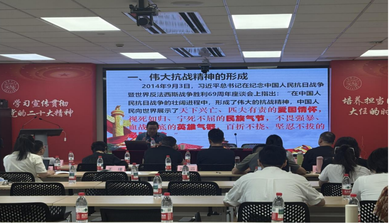 8月24日,研修班继续开展理论学习与红色教育。上午,beat365唯一官网苏智良教授作《抗战与中华民族伟大复兴》专题讲座,从淞沪抗战等历史事件出发,阐明抗战胜利对民族复兴的重要意义。下午,全体学员参观了淞沪抗战纪念馆和四行仓库抗战纪念馆,了解了上海这座城市的抗战壮举,感受了中华民族不屈不挠的抗战精神。