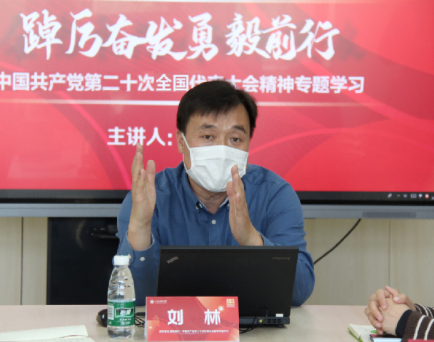 刘林老师围绕“中国式现代化的核心要素”、“中国式现代化的本质要求”、“中国式现代化道路走向共同富裕的历史必然”三个方面 ,深入浅出为同学们进行解读。首先,刘老师对历届党代会的主题进行了回顾,并对党的二十大报告主题中的“弘扬伟大建党精神”、“自信自强,守正创新”“全面推进中华民族伟大复兴”等关键词展开详细阐释。讲座中,刘林教授用“中国高度”“中国速度”“中国跨度”“中国深度”“中国厚度”“中国精度”展示了在新时代十年党和国家事业取得的历史性成就,并对党和人民事业具有重大现实意义和深远历史意义的三件大事进行生动阐释。他指出,习近平总书记的报告举旗定向、主题鲜明,全景展示了过去五年的工作和新时代非凡十年的伟大变革,也全方位展现了物质文明和精神文明协调发展、相互促进。最后,刘老师谈到教育、科技、人才是全面建设社会主义现代化国家的基础性、战略性支撑,他勉励马院青年学子,要勇立时代潮头,以青年之声发时代强音,让听党话、跟党走的信念成为自觉追求,怀抱梦想又脚踏实地,敢想敢为又善作善成,做有理想、敢担当、能吃苦、肯奋斗的新时代好青年。