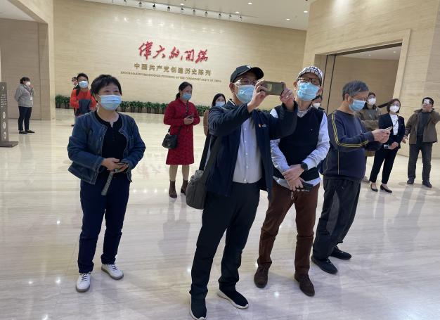 党员同志们依次参观各个展厅,从“南陈北李,相约党建”雕塑、到采用沉浸式场景影像技术还原“开天辟地”等展陈设计,大量现代化光影媒体技术的运用,既凝固历史,又穿越时空,再现了中国共产党光辉的历史征程,使他们切身感受中国共产党建党的艰辛,体会共产党人历久弥新的初心使命。