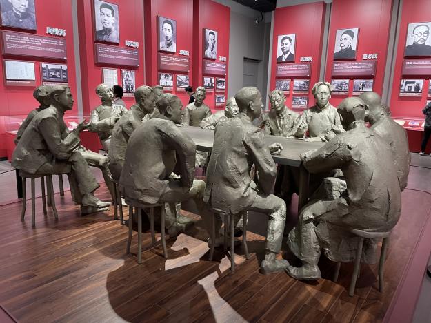 进入馆内,鲜红的党旗首先映入眼帘。纪念馆大厅中,13位代表栩栩如生的人物浮雕,大家纷纷驻足瞻仰。
