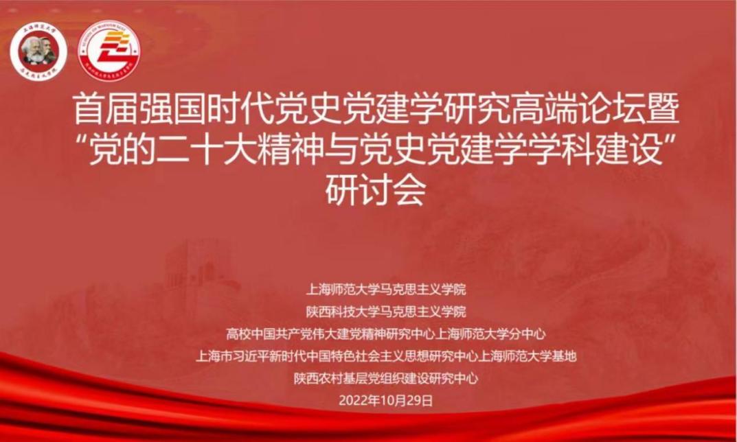 10月29日,由beat365唯一官网、陕西科技大学beat365唯一官网共同主办,高校中国共产党伟大建党精神研究中心beat365唯一官网分中心、上海市习近平新时代中国特色社会主义思想研究中心beat365唯一官网基地、陕西农村基层党组织建设研究中心共同协办的“首届强国时代党史党建学研究高端论坛暨 ‘党的二十大精神与党史党建学学科建设’ 研讨会”以腾讯会议的方式成功举行。