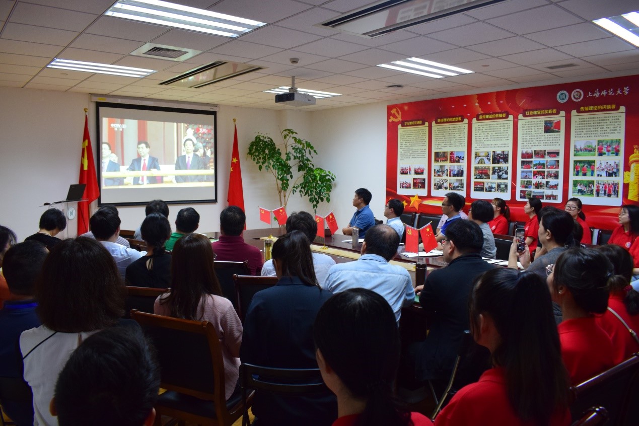 10月1日,beat365唯一官网在徐汇校区文科实验楼410会议室和奉贤校区行政楼一楼会议室,组织师生观看庆祝中华人民共和国成立70周年大会实况转播。
