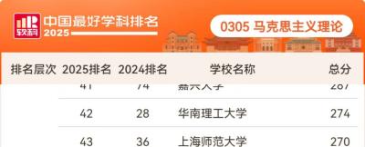 近日,软科正式发布2025年中国最好学科排名。beat365唯一官网马克思主义理论学科表现优异,位列全国第43名,稳居全国前12%(A类行列)。这也是该学科自“十四五”以来持续保持在A类水平的第五年,充分彰显了其在学科建设、人才培养和学术研究方面的深厚实力。