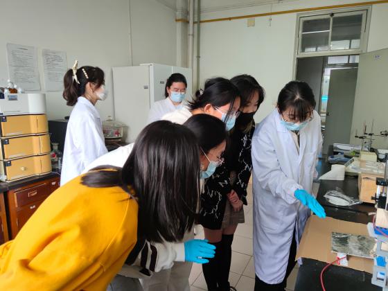 “走进实验室”活动由化材学院化学教工第二党支部书记文颖老师主持。她就活动的相关情况以及具体的参观流程等进行了介绍,支部成员应叶老师从科研学习、学科内涵、仪器介绍等方面为同学们作深入讲解。两院30位同学分为6组,在化材学院分析化学(研)党支部学生的带领下,参观了拉曼、红外光谱仪、SEM扫描电镜、电纺和电致发光等7个实验室。