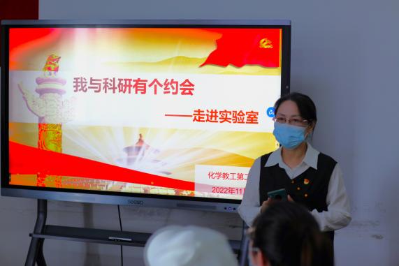 化材学院党委书记盛况老师致欢迎辞。盛况老师对马院老师和同学的到来表示热烈欢迎,并就化材学院的学科建设、师资队伍、人才培养等情况进行了介绍。他表示,两院共同举办的走进实验室活动不仅仅是一次走进科学、感受科学的活动,更是一个促进文理交流的契机、是理论学习的创新形式。他希望未来两院能够就“思政课程与课程思政同向同行”深入合作,开启思维碰撞,促进共同发展。随后,马院党委副书记、副院长孙琳老师和化材学院党委副书记、副院长张皓月老师分别介绍了马克思主义学生理论宣讲团和化材学院首届应用化学拔尖班的相关情况。