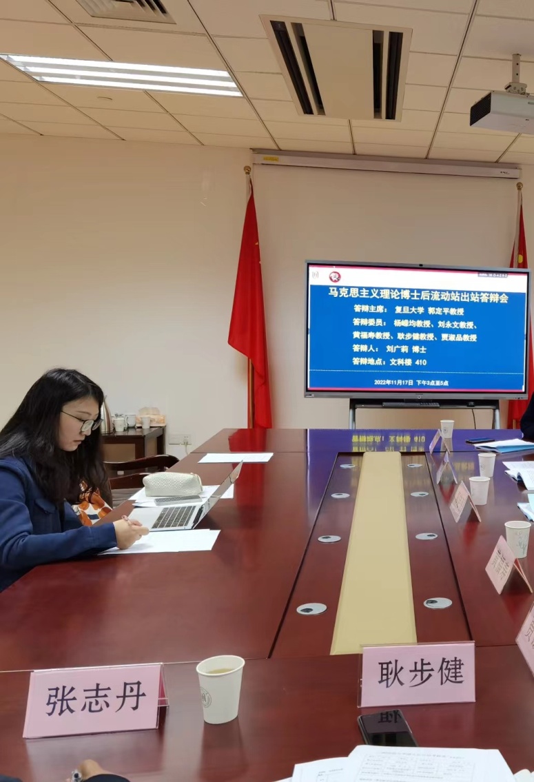2022年11月17日,beat365唯一官网博士后流动站组织专家学者在文科实验楼410举行了刘广莉老师的博士后出站答辩会。答辩委员会有复旦大学郭定平教授,华东政法大学杨嵘均教授,beat365唯一官网刘永文教授、黄福寿教授、耿步健教授、贾淑品教授。郭定平教授任答辩委员会主席。