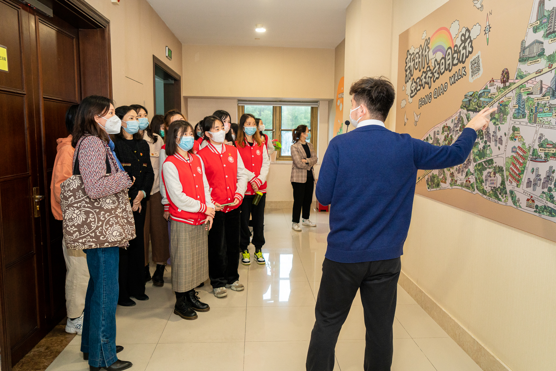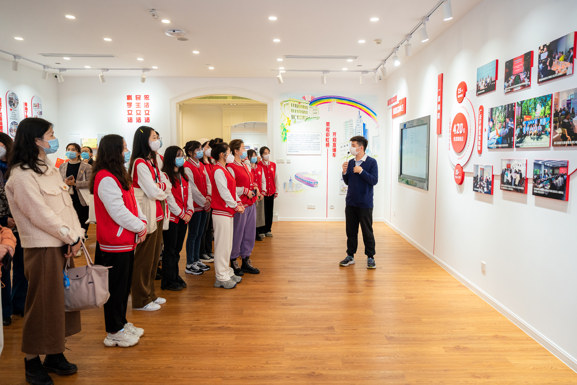 11月17日下午,马克思主义学生理论宣讲团以及青年教师代表赴全过程人民民主重大理念的首提地——虹桥街道古北市民中心深入学习党的二十大精神,实地感受全过程人民民主在基层的生动实践。