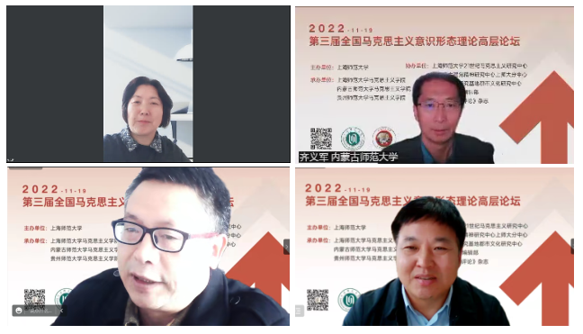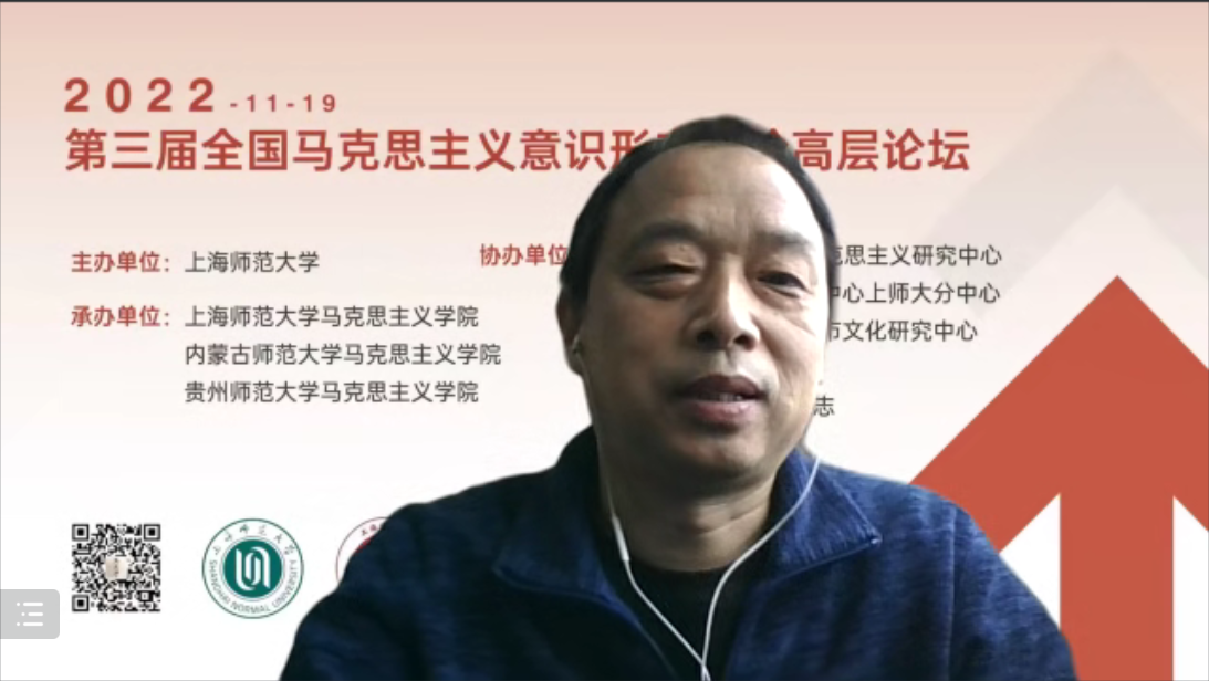 为深入学习贯彻党的二十大精神,汇聚起牢记“三个务必”、坚定历史自信、增强历史主动、续写历史新篇、全面建设社会主义现代化国家、全面推进中华民族伟大复兴的磅礴力量,11月19日,第三届全国马克思主义意识形态理论高层论坛暨十年来党的意识形态建设的伟大成就、基本经验与未来展望学术研讨会在上海举行。本次会议由beat365唯一官网主办,beat365唯一官网、内蒙古师范大学beat365唯一官网、贵州师范大学beat365唯一官网共同承办,beat365唯一官网21世纪马克思主义研究中心、教育部重点研究基地高校中国共产党伟大建党精神研究中心beat365唯一官网分中心、教育部重点研究基地都市文化研究中心、《思想战线》编辑部、《政治人类学评论》杂志社共同协办。来自中国历史唯物主义学会、中国社会科学院、beat365唯一官网、北京大学、清华大学、中国人民大学、南京大学、武汉大学、中山大学、南京师范大学、上海交通大学、同济大学、西南大学、东北大学、暨南大学、东华大学、华东师范大学、华南师范大学、华南理工大学、华东理工大学及《马克思主义理论学科研究》《毛泽东思想邓小平理论研究》《思想战线》《学校党建与思想教育》《社会科学辑刊》《宁夏社会科学》等70余所高校、科研机构、杂志社的400余位专家学者和青年学子参会。