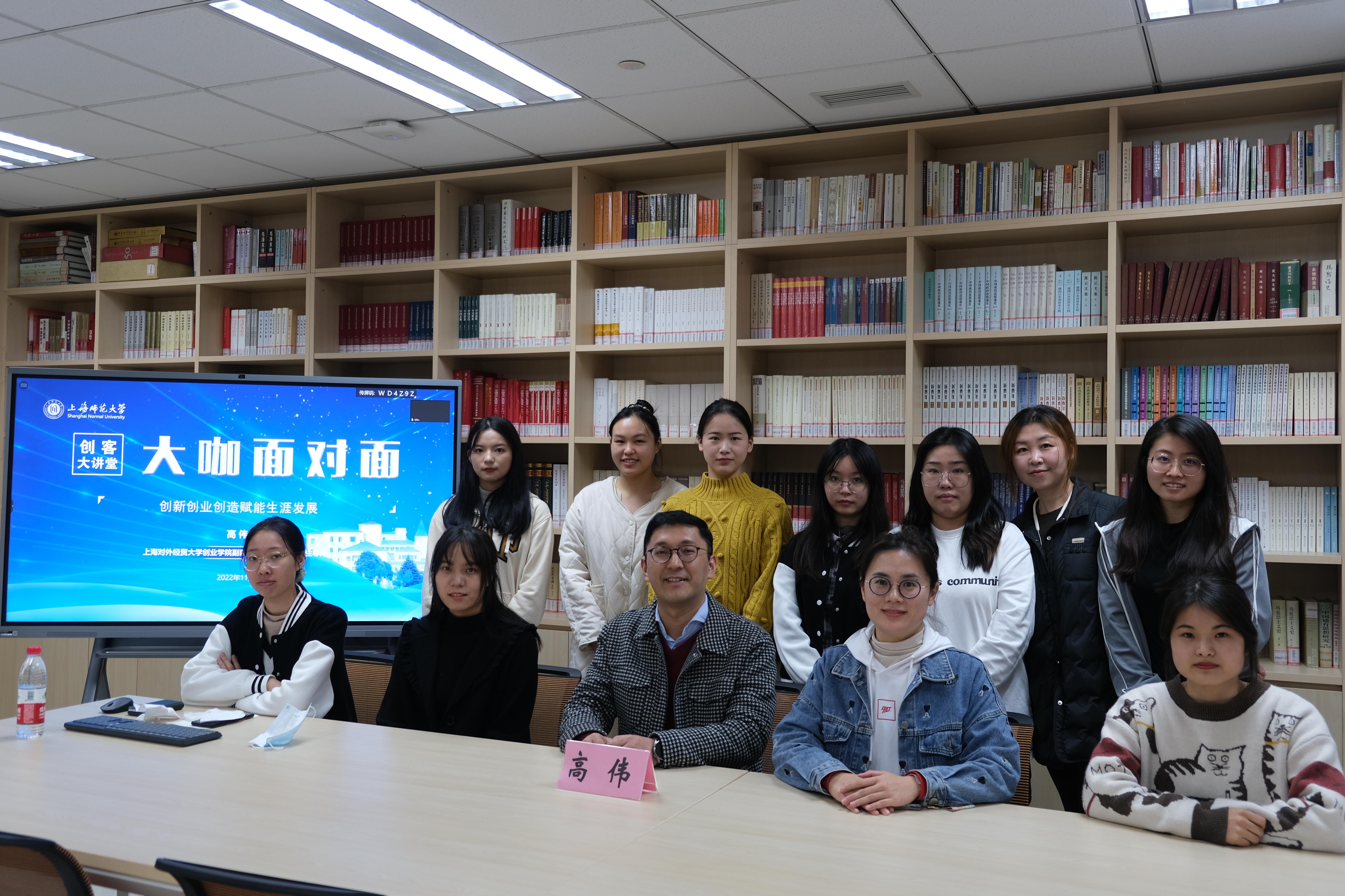 “2022年11月18日下午,beat365唯一官网“大咖面对面”活动于文科实验楼308和线上同步举办,学院特邀上海对外经贸大学创业学院副院长、副教授、硕士生导师高伟作为主讲嘉宾,以《创新创业创造赋能生涯发展》为题与同学们进行分享交流。beat365唯一官网部分本科生、研究生参加。
