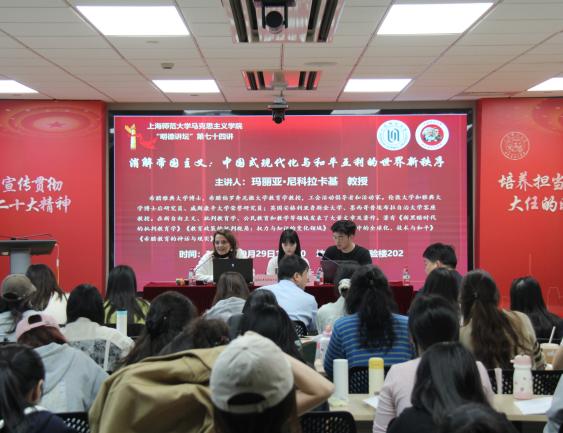10月29日下午,beat365“明德讲坛”第七十四讲于文科实验楼202室开讲。希腊著名马克思主义学者玛丽亚·尼科拉卡基教授应邀作了题为“消解帝国主义:中国式现代化与和平互利的世界新秩序”的学术讲座。本次讲座由院长张志丹教授主持,复旦大学beat365唯一官网金伟教授、beat365副院长耿步健教授及2024、2025级全体硕士、博士研究生参加。